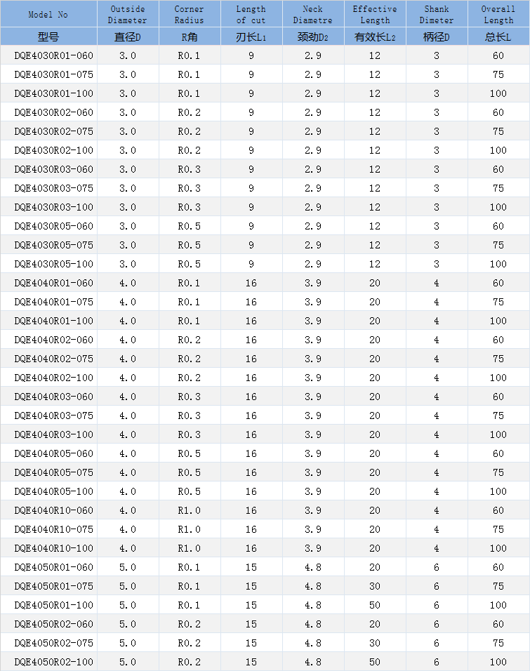 二刃深溝圓鼻銑刀-石墨圓鼻銑刀